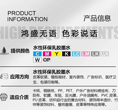 第一代乳膠顏料墨水,主要應用在銅版紙數碼打樣、皮革轉印印花、PET膜打印等。