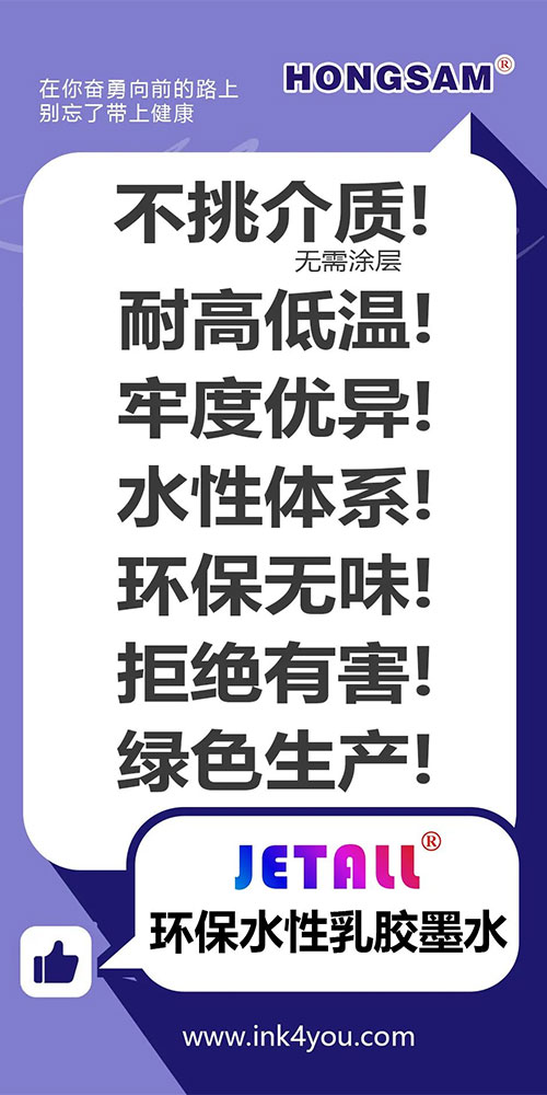 可以直接說鴻盛數碼環保水性乳膠墨水市場對標為UV墨水及弱溶劑墨水,其中最重要的一點就是環保特性,接觸過uv或弱溶劑打印的客戶都知道,uv墨水都會有比較刺激性的氣味,即使打印完成的畫面也會持續揮發出刺激性的氣味,這種刺鼻氣味就是可揮發性有機物VOC。味會刺激眼睛,鼻腔,長時間接觸墨水,氣味會通過呼吸進入人體并溶于血液,且無法排除體外,慢慢造成眼睛刺激,血液損壞,中樞神經損傷,腎損壞。因此,所有正規廠生產uv墨水的包裝瓶上均有對人體傷害程度的警示。還有不光是墨水,還要注意led紫光燈,對人體尤其是對眼睛的損害具有不可修復傷害。因此,這也造成了了工人不愿意干,招工難,工廠相關人才也無法有效沉淀,更重要的是與國家綠色生產、環保生產的國策對立。