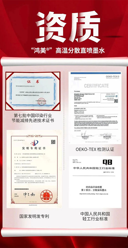此次的測(cè)試成功,也給還在觀望的設(shè)備廠商打消了顧慮,從墨水的流暢性及兼容性來講,是完全達(dá)到官方的要求。從實(shí)際應(yīng)用中,鴻盛數(shù)碼高溫分散直噴染料墨水已成功應(yīng)用于多種工業(yè)噴頭。