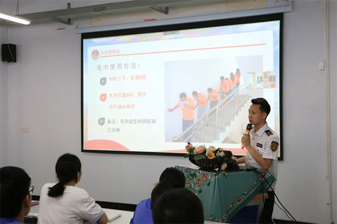 河南消防安全宣教中心的宋教官借助課件演示、提問互動等方式,按照“防消結合,預防為主”的原則,分別就單位、家庭用電、用火,發生火災處置辦法,滅火器的使用方法,針對不同火災場景如何正確開展安全疏散與逃生的知識等內容向大家進行深入淺出的講解。通過觸目驚心的圖片、視頻,一個個真實而又發人深省的案例,用“血的教訓”警示職工高度重視消防安全,積極主動做好單位及家庭的消防安全工作。