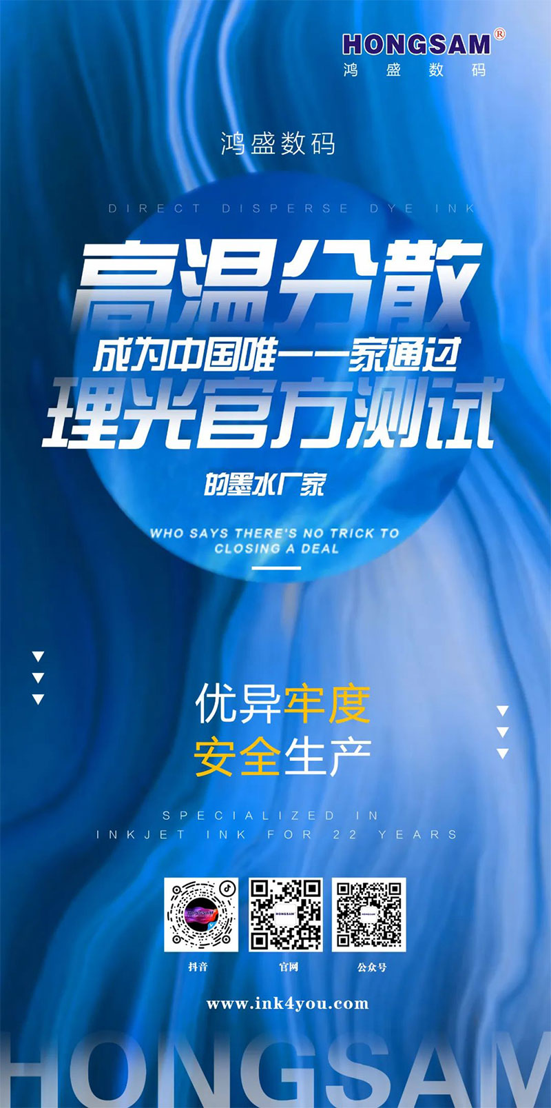 鴻盛數碼高溫分散墨水經過嚴格的全面測試,順利通過理光噴頭的苛刻測試,成為中國唯一一家通過理光官方測試的高溫分散墨水廠家。2023年01月14日,理光官網公布了此消息,這也一定程度上展示了鴻盛數碼墨水與噴頭匹配的安全性和兼容性,進一步提升了鴻盛數碼在國際的影響力。