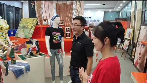 現場不僅對我們此次發布的白墨的特點做了簡單的介紹,而且現場展示了涂料直噴的濕打工藝,打印效果震撼。