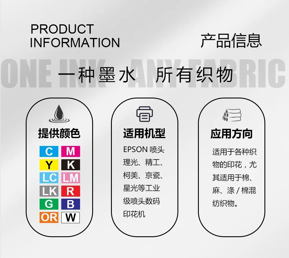 “捷特絲 ”紡織涂料墨水作為鴻盛紡織類墨水中的“亮劍”產品,憑借著的色彩和牢度,以及流暢性和穩定性,在多個應用領域被廣泛長期使用,得到了客戶的高度認可。擁有EPSON噴頭專用墨水,以及理光、精工、柯美、京瓷、星光等工業噴頭專用墨水。鴻盛數碼希望基于自有知識產權的專利技術、高品質紡織涂料墨水、強有力的印染技術及服務團隊,在涂料數碼印花領域保持持續領先。