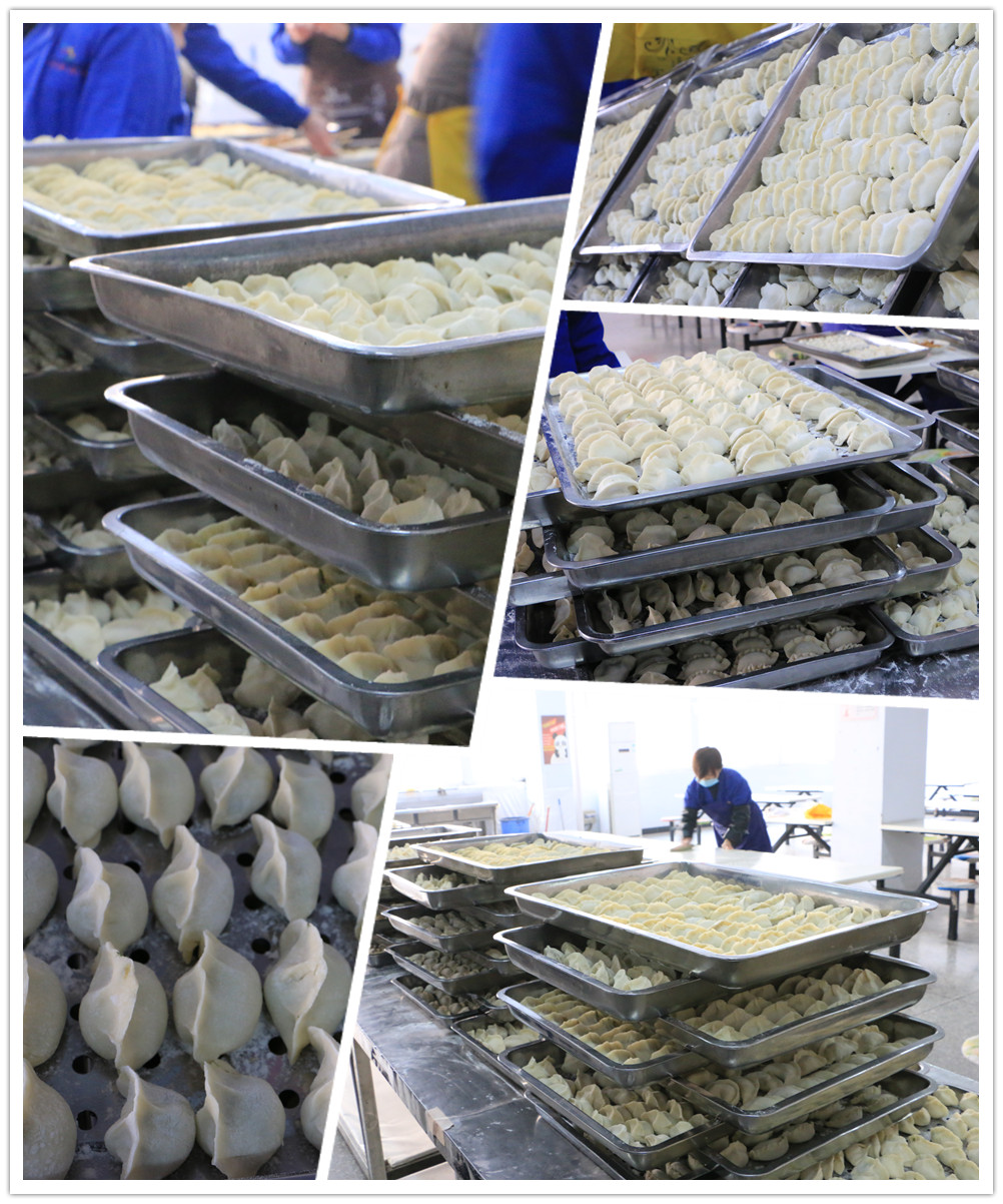 一大早,各部門的包餃子能手紛紛帶著“家伙事兒”聚集在活動現場。大家八仙過海,各顯神通,和面、拌餡、搟皮、包餃子,個個動作嫻熟,忙的不亦樂乎。大家一邊干活一邊嘮著家常,有說有笑,其樂融融,整個場面洋溢著濃濃的歡樂氣息。