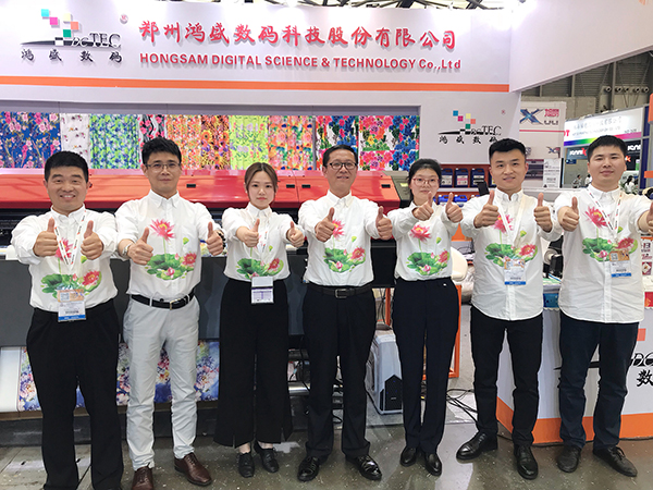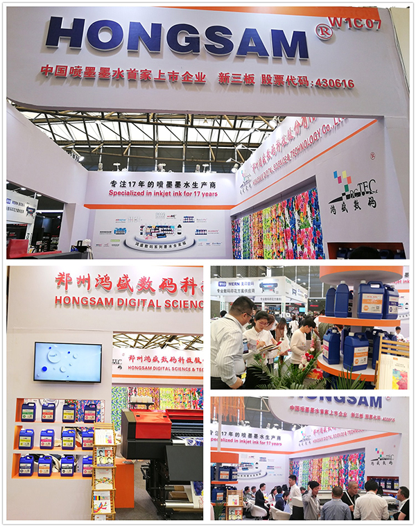 展會(huì)現(xiàn)場(chǎng),鴻盛數(shù)碼“鴻美”高日曬熱轉(zhuǎn)印墨水配套EPSON4個(gè)5113噴頭數(shù)碼機(jī),現(xiàn)場(chǎng)演示打印效果,色彩精湛,流暢性好。高日曬熱轉(zhuǎn)印墨水在日曬牢度和耐遷移度方面進(jìn)行了細(xì)致研究,高日曬牢度,相對(duì)較好的遷移牢度,色彩艷麗、飽和度高,受到目前進(jìn)出口紡織品和熱轉(zhuǎn)印客戶(hù)的青睞。