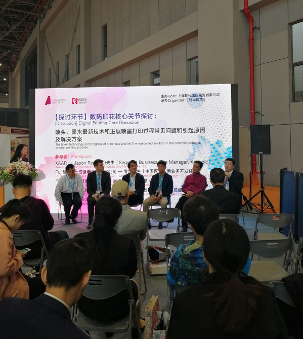 在展會(huì)期間舉行的數(shù)碼印花論壇上,王總作為嘉賓,對(duì)觀眾提出的問題一一做了解答。