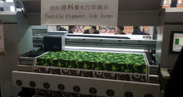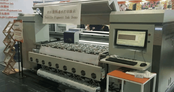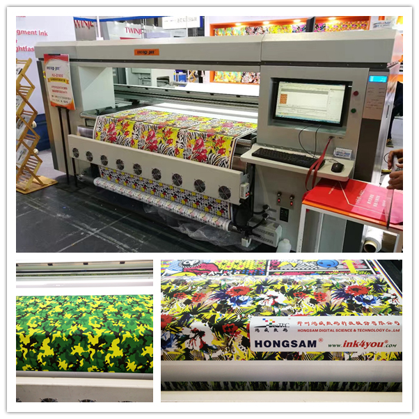 現場另有“鴻美”熱轉印墨水配套使用HJ-4195工業級高速紡織數碼印花機,機器采用工業級壓電5113噴頭,超高速、高精度打印。HJ-4195生產效率高,噴頭成本低,設備成本低,可大幅降低生產成本。