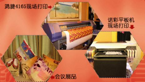 鴻捷4165打印方案以及平板機數碼直噴方案,生動直觀地展示了數碼印花新品的應用,受到了與會專業人員的關注和好評。