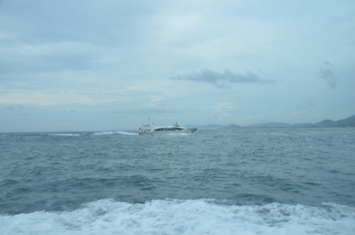 一行人乘坐游輪首先踏上了被稱作萬年靈秀小島的分界洲島,遠看群峰掩藏云間,近看浪花如雪,沙灘如銀。游泳、潛水,嬉戲,大家和大海來一次親密接觸。