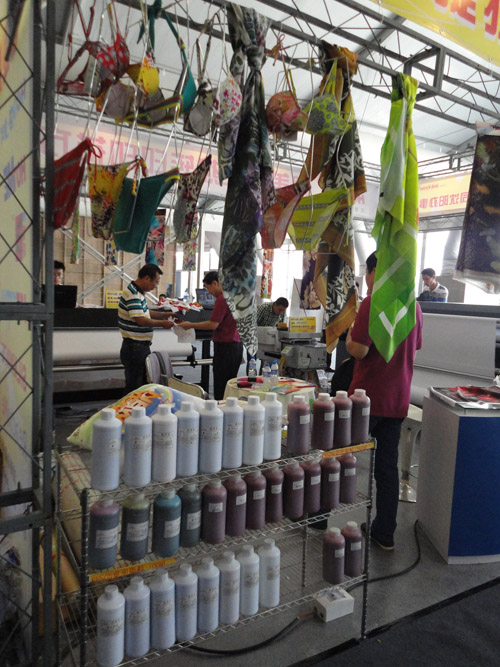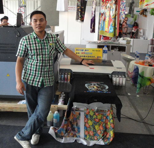 此次2012國際泳裝展上,HJ-8420配合“捷特絲®”涂料墨水直噴泳裝布、成衣印花,其超乎想象的打印速度,逼真的打印畫面,以及環(huán)保、節(jié)約資源的特性,吸引眾多現(xiàn)場觀眾的目光。此套方案采用的“捷特絲®”二代紡織涂料墨水是一款應(yīng)用于紡織品數(shù)碼印花的專業(yè)墨水,經(jīng)過200納米級的精細(xì)過濾,根據(jù)印花速度和面料情況,客戶可以選擇自己的打印精度。