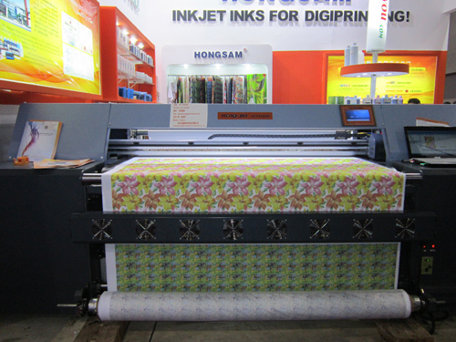 數(shù)碼噴墨印花已然風靡全球,HJ-T4160A配合“捷特絲®”二代紡織涂料墨水,在2013廣州國際廣告標識展,現(xiàn)場直噴純棉坯布印花,讓現(xiàn)場觀眾體驗了無水數(shù)碼噴墨印花的潮流。HJ-T4160A是一款生產(chǎn)型、工業(yè)化匹布高速數(shù)碼印花機,使用鴻盛活性、酸性、涂料、分散等數(shù)碼印花墨水,滿足各種面料的印花需求。HJ-T4160A采用打印傳動系統(tǒng),以及專業(yè)的導帶面料傳送系統(tǒng),而且可以根據(jù)印花圖案的要求,配置墨水顏色數(shù),保證高精度、高品質的印花輸出效果。在2013廣州國際廣告標識展鴻盛展區(qū),HJ-T4160A導帶式數(shù)碼印花機使用色澤鮮艷、環(huán)保穩(wěn)定的“捷特絲®”二代紡織涂料墨水,以其對印花色彩和質感的高品質呈現(xiàn),為現(xiàn)場觀眾譜寫潮流數(shù)碼印花的華麗樂章!