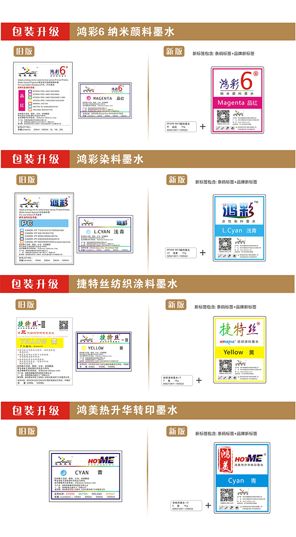 自2015年5月15日起,鴻盛數碼部分墨水產品包裝將“煥新升級”,升級內容包括標簽、文案、包裝等。升級后的新包裝產品現已陸續上市,并將逐步取代原有包裝,期間出現的新舊包裝共存屬于正?,F象,敬請廣大合作伙伴知悉,給您帶來的不便,敬請諒解。
