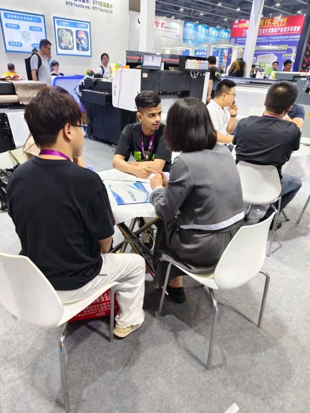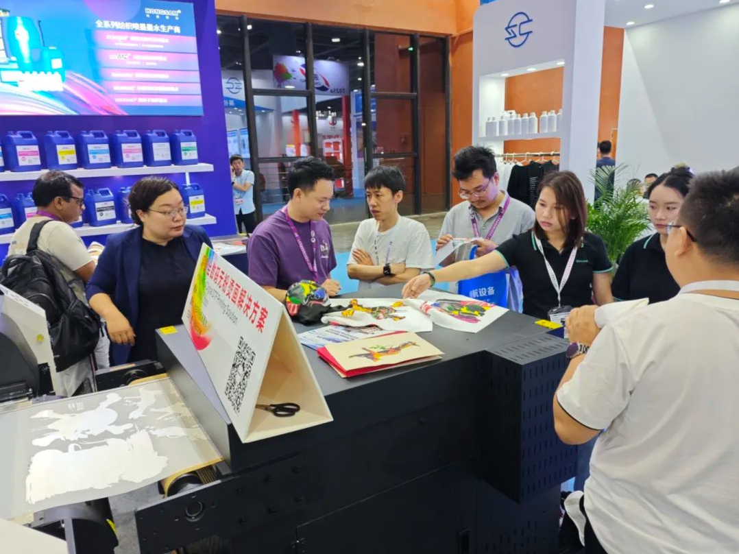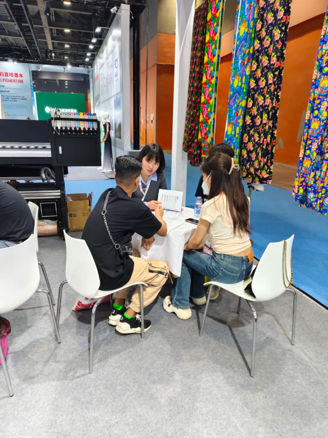 鴻盛數碼深耕噴墨行業23年,本次展會展示旗下全系列數碼印花墨水:捷特絲®紡織涂料墨水、鴻美®分散染料墨水、銳美®活性染料墨水、絲美特®酸性染料墨水、鴻盛陽離子染料墨水及水性環保乳膠墨水打印方案、不僅涵蓋了墨水及設備,還滿足不同客戶需求的打印方案,吸引了眾多觀眾前來了解咨詢。