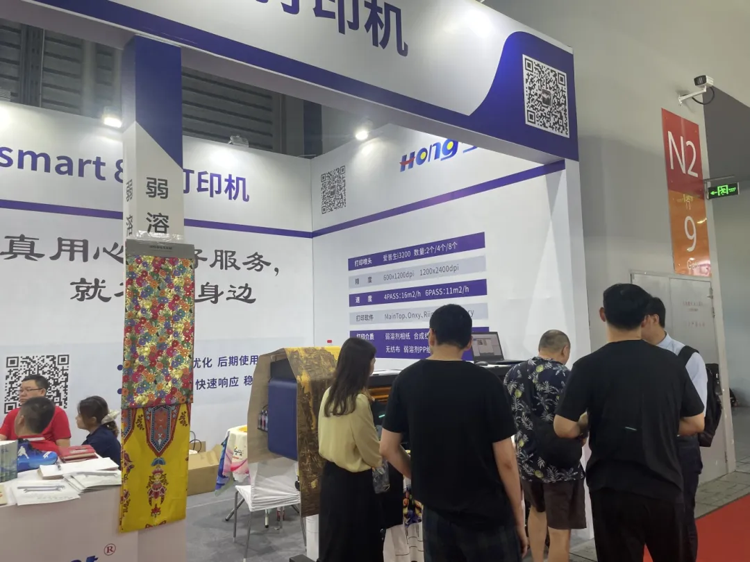 鴻盛數碼深耕噴墨行業23年,本次展會展示旗下HONGJET-artsmart8色雙頭數碼打印機、HJ-6090L乳膠平板打印機、HJ-1808L乳膠打印機、數碼影像系列墨水(EverNew®高耐光染料墨水、鴻彩6®納米顏料墨水)及水性環保乳膠墨水打印方案、不僅涵蓋了墨水及設備,還滿足不同客戶需求的打印方案,吸引了眾多觀眾前來了解咨詢。