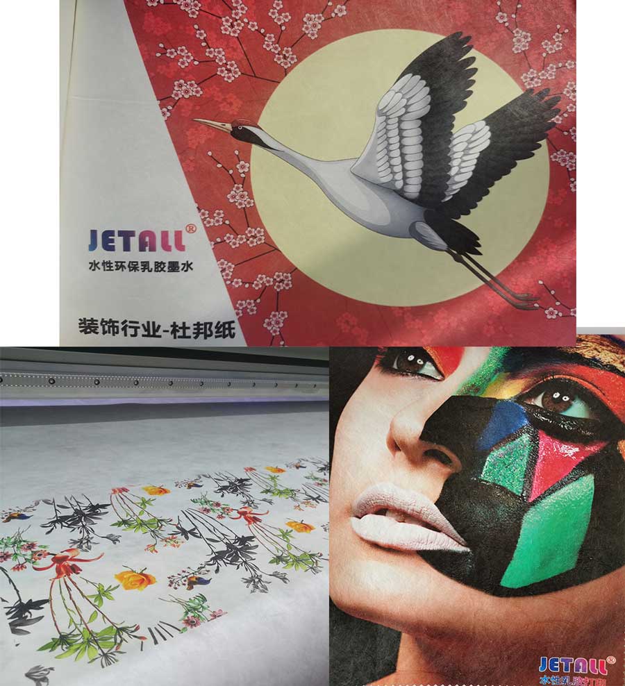 通過使用HONGSAM JETALL®水性環保乳膠油墨和Hong-Jet®乳膠打印機,可完美實現HDPE非織造布的數字直接印刷特衛強®紙(特衛強®是杜邦公司附屬公司的商標)。這種紙張可用于書封、錢包、袋子、油漆套裝等。Hong-Jet®乳膠打印機是環保、無毒的,打印色彩鮮艷,適用于多種材料的印刷(皮革、帆布、墻紙、墻布、無紡布、車貼、反光貼、透明膜、藝術紙、瓦楞紙和非涂層材料等)。