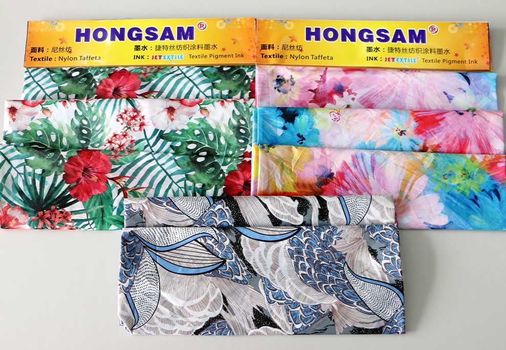 我們經過十多年的研發(fā),利用專利技術,完善了“捷特絲®”紡織品數碼印花涂料墨水的各項性能,顏色鮮艷,接近活性的色彩,同時實現流暢打印,并進一步提升了色牢度。 此外,我們出于對印染技術的深入了解,研究了前后處理工藝,推出了預處理液,后處理液等配套助劑和工藝,全面提升色彩和色牢度,滿足客戶需求。